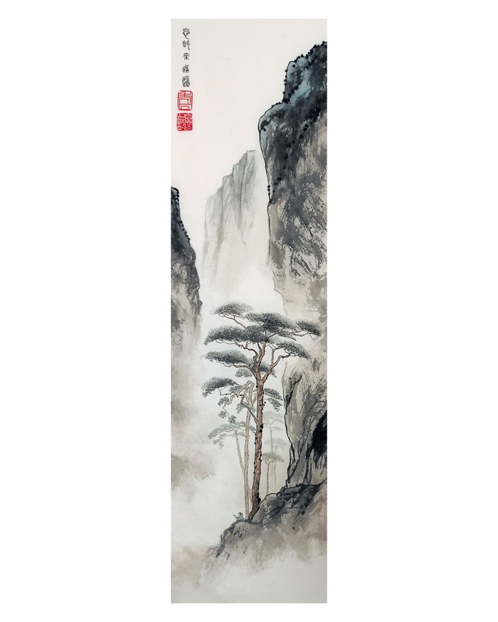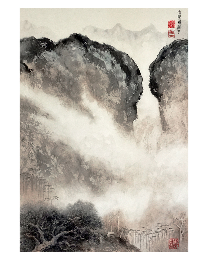 Je peins des paysages à la manière chinoise, tous les jours et en tous lieux. Le plus souvent dans mon atelier avec des pinceaux, de l’encre de Chine, trois couleurs et du papier ; mais aussi dans les transports en commun, les salles d’attente de médecins, les halls de gare et autres endroits inconfortables, avec un simple carnet et un stylo. Je trace des monts abrupts sur lesquels s’accrochent des pins audacieux, des escarpement géants que rayent parfois d’imposantes cascades, des nappes de brouillard et des nuages cotonneux, des bouquets de bambous agités par le vent, des ponts de bois traversant des torrents, des huttes chétives aux toits de palme, des bords de mer déchiquetés, du caillou, de la roche.