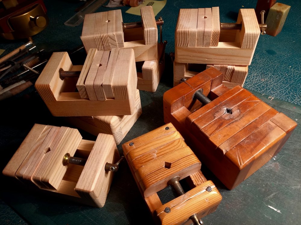 Les étaux. J’en ai neuf, le compte est bon mais certains sont en mauvais état, j’en ai commandé deux de plus.