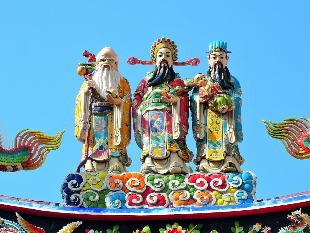 Les “Trois Étoiles” au sommet du temple Magong Beiji à Magong (Taiwan)