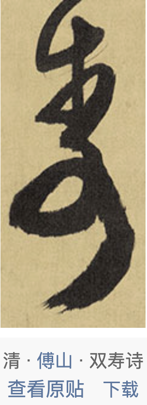 J’avais parlé par là du caractère le plus employé en Chine, le plus souvent reproduit, celui du bonheur fú 福. Le deuxième caractère le plus reproduit est probablement celui de l’immortalité, shòu 壽 (寿 en simplifié). Fú 福 et shòu 壽 font partie d’une triplette nommée fú-lù-shòu, c’est-à-dire bonheur-prospérité-longévité 福祿壽 (福禄寿 en simplifié). On les représente habituellement par trois vieillards, les « Trois Étoiles » sānxīng 三星. Le bonheur est à droite, la prospérité au centre, et la longévité à gauche.