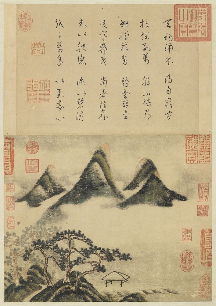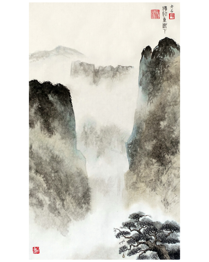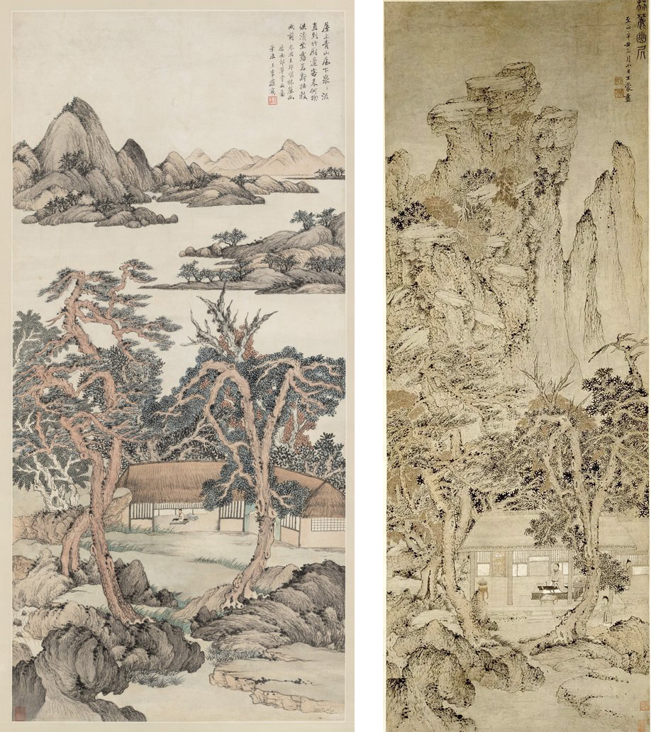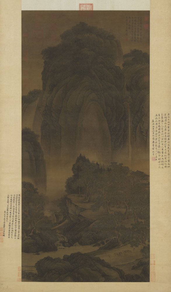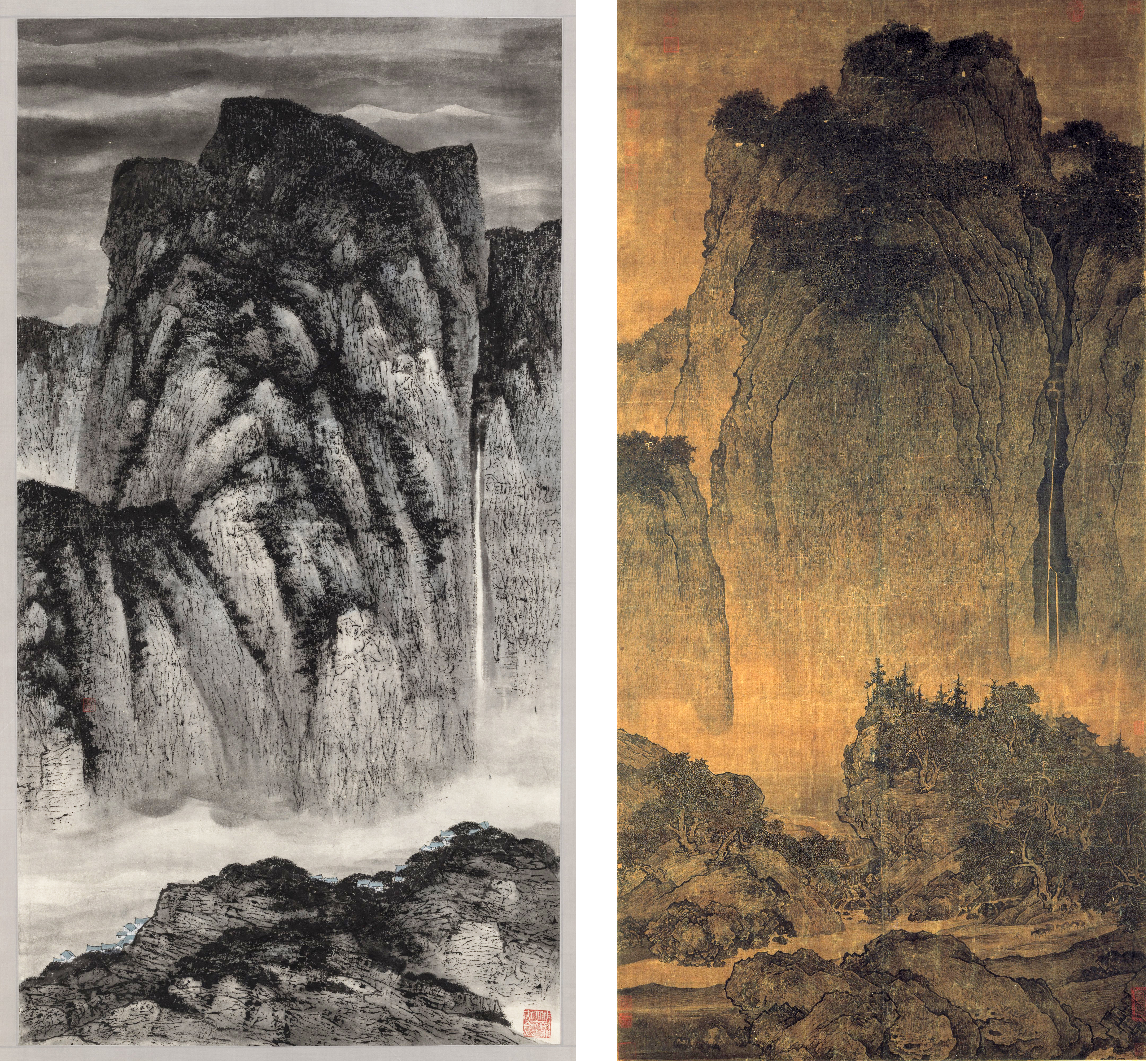 Le paysage chinois est avant tout montagnard et embrumé. De cette brume qui noie tout dans l’infini des possibles, celui où la montagne peut se transformer en eau et l’eau en montagne. Le paysage chinois est une montagne de rêve. Aussi serait-il vain de rechercher les lieux représentés par les peintres, ils sont le plus souvent inventés. Même quand leurs œuvres portent un nom de lieu réel, ces dernières n’offrent qu’une lointaine ressemblance avec leur source d’inspiration. « Le paysage, tout en ayant substance, tend vers l’esprit », affirmait un peintre et moine bouddhiste du Ve siècle. Il s’agit donc d’une peinture des tréfonds de l’âme qui s’exprime à travers la roche, la mousse, la lune ronde et les chutes d’eau vertigineuses. Une peinture-poésie. Le moine et peintre Su Dongpo disait, à propos du peintre et poète Wang Wei : « Il y a de la poésie dans sa peinture et de la peinture dans sa poésie. »