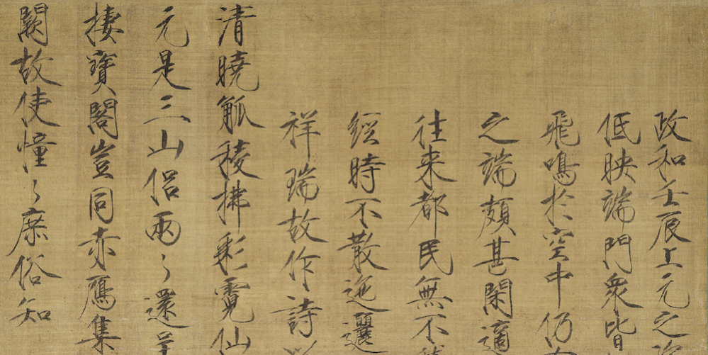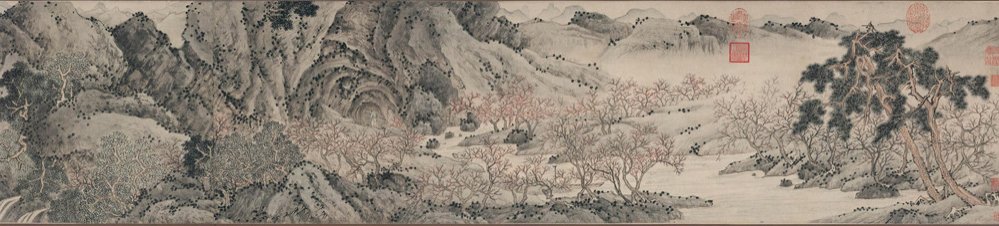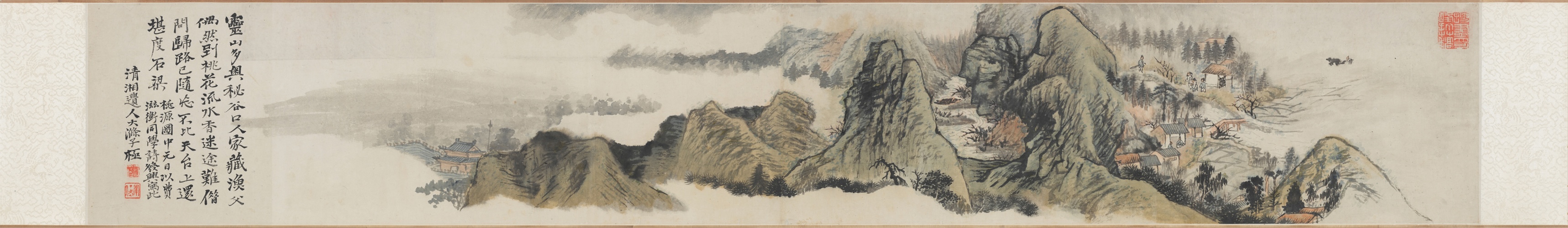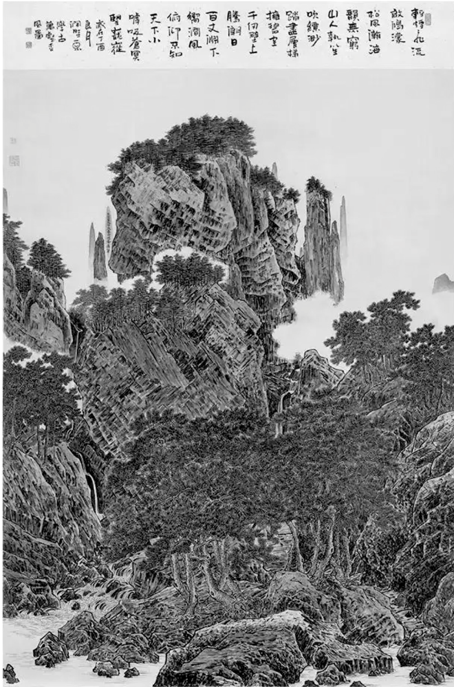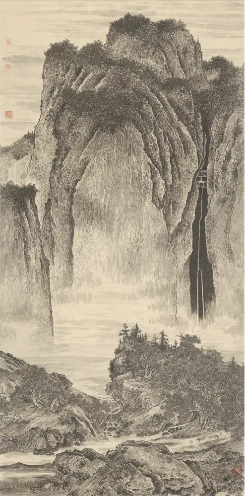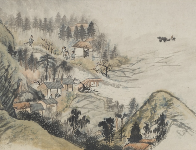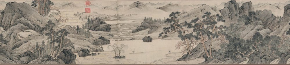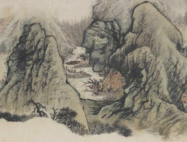 Le paysage chinois est avant tout montagnard et embrumé. De cette brume qui noie tout dans l’infini des possibles, celui où la montagne peut se transformer en eau et l’eau en montagne. Le paysage chinois est une montagne de rêve. Aussi serait-il vain de rechercher les lieux représentés par les peintres, ils sont le plus souvent inventés. Même quand leurs œuvres portent un nom de lieu réel, ces dernières n’offrent qu’une lointaine ressemblance avec leur source d’inspiration. « Le paysage, tout en ayant substance, tend vers l’esprit », affirmait un peintre et moine bouddhiste du Ve siècle. Il s’agit donc d’une peinture des tréfonds de l’âme qui s’exprime à travers la roche, la mousse, la lune ronde et les chutes d’eau vertigineuses. Une peinture-poésie. Le moine et peintre Su Dongpo disait, à propos du peintre et poète Wang Wei : « Il y a de la poésie dans sa peinture et de la peinture dans sa poésie. »